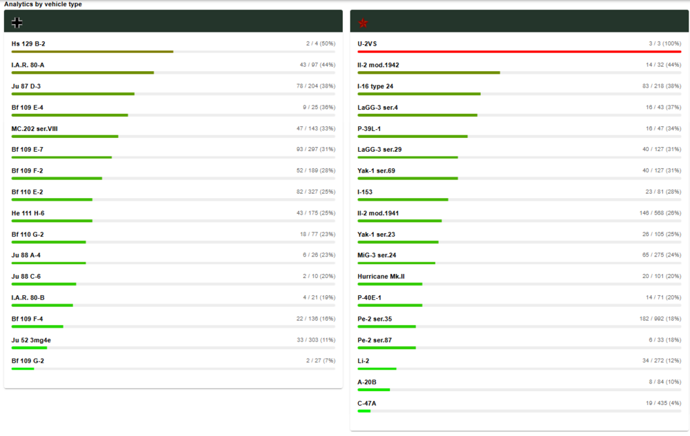 3. If we consider specific cases, like the P39 and the E7, and ignore the overall picture, the E7 would likely be the clear winner. However, there are loss statistics, and they paint a somewhat different picture than you might think. Please study this section, and you will understand that rank is not a strict limitation on aircraft use. The BF-109F4 was used more often than the Yak-1 Series 69. https://il2-fl.ru/en/stats?campaignId=17&tab=campaign-losses UPD. The page is only available to subscribers. Screenshot from the page
